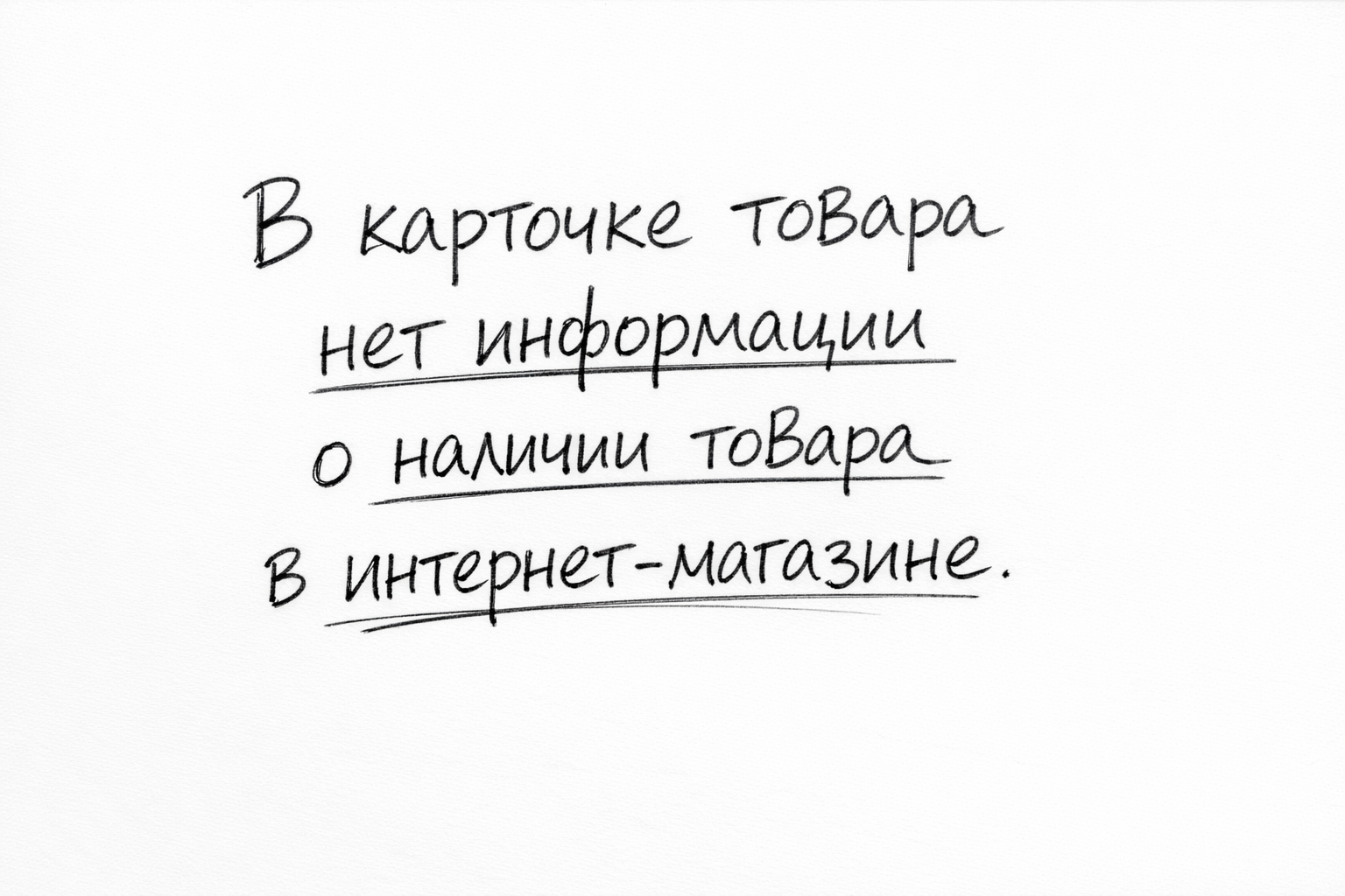 Посетитель открывает карточку и видит фото, цену, кнопку. Но нет главного — понятного статуса наличия. Неясно, отправят ли заказ сегодня, через неделю или вообще не отправят.