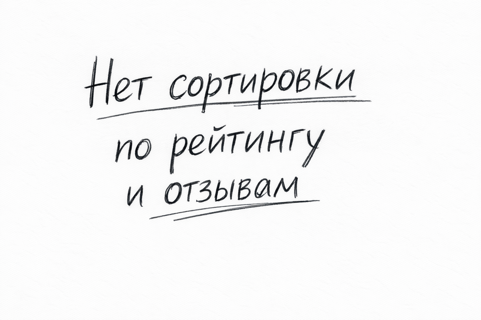 Проблема заметнее при разном объёме отзывов. Сильные позиции прячутся глубоко. Звёзды без действия выглядят недоделкой. Оценки теряют пользу, путь к карточке удлиняется.
